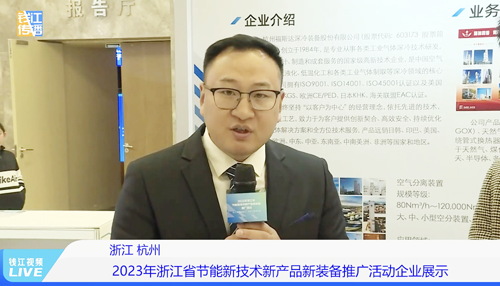 2023年浙江省节能新技术新产品新装备展览会于2023年12月7日-8日在杭州举办。杭州福斯达深冷装备股份有限公司成功入选,在此次“三新”推广活动中亮相。