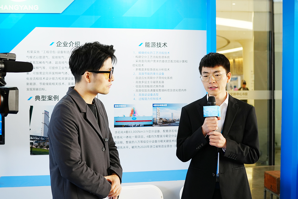 图1:杭氧集团技术人员在“三新”展会上接受现场直播采访